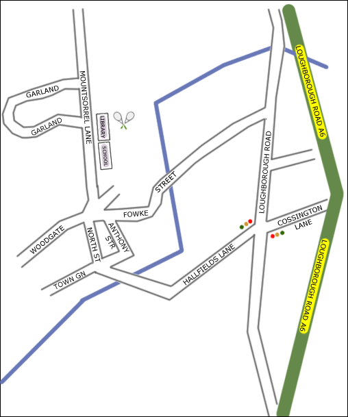 The club is located behind the library on Mountsorrel Lane and is accessed via a road between the junior school and the library.